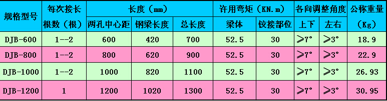 DJB型鉸接頂梁基本參數(shù):
