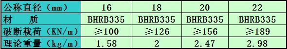 右旋錨桿桿體參數: