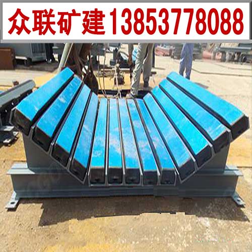 緩沖床主要用于替代緩沖托輥,對皮帶機輸送帶起保護作用,延長(cháng)輸送帶的使用壽命。緩沖床是由緩沖條和支架組成的,緩沖條主要應用優(yōu)良的高彈性特種橡膠層充分吸收物料下落時(shí)的沖擊力,大大降低了物料下落時(shí)對輸送帶的沖擊,真正改善物料點(diǎn)的受力狀況,采用特殊UHMW高分子聚乙烯表面,使輸送帶與緩沖條之間摩擦系數降到最低,且耐磨性好。緩沖床的使用保證了輸送帶的面與面的接觸,受力均勻,有效的防止了由于托輥斷裂脫落造成的皮帶縱向撕裂,同時(shí)大大降低了皮帶被銳器或尖銳物料穿透后縱向撕裂的概率。